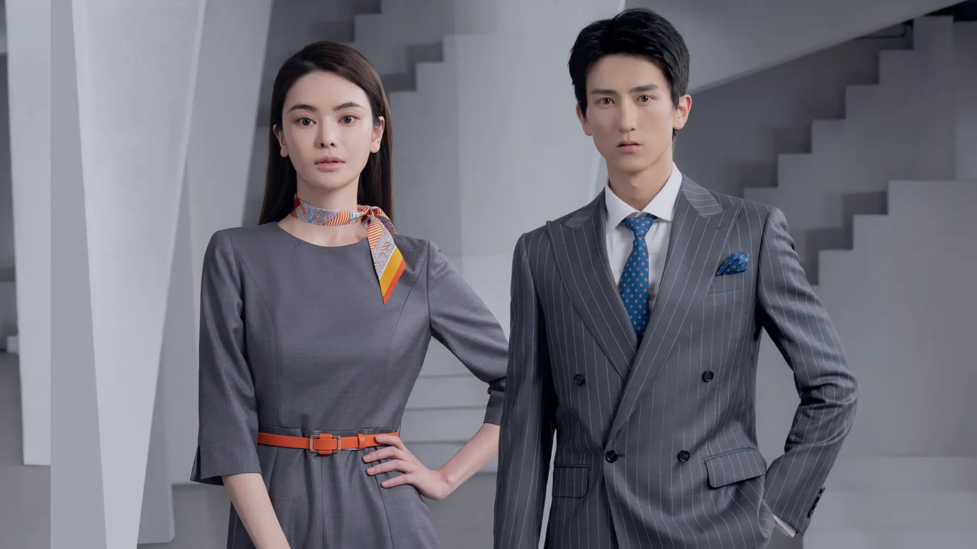 “方案式設計”是衣世嘉職業裝根據各企業文化、企業理念、企業標準色以及服務內容為核心展開的一套完整的、系統的視覺表達體系。它將抽象概念轉換為具體記憶和可識別的職業形象,塑造“排他性”的同時,使之更具國際感和時尚感。