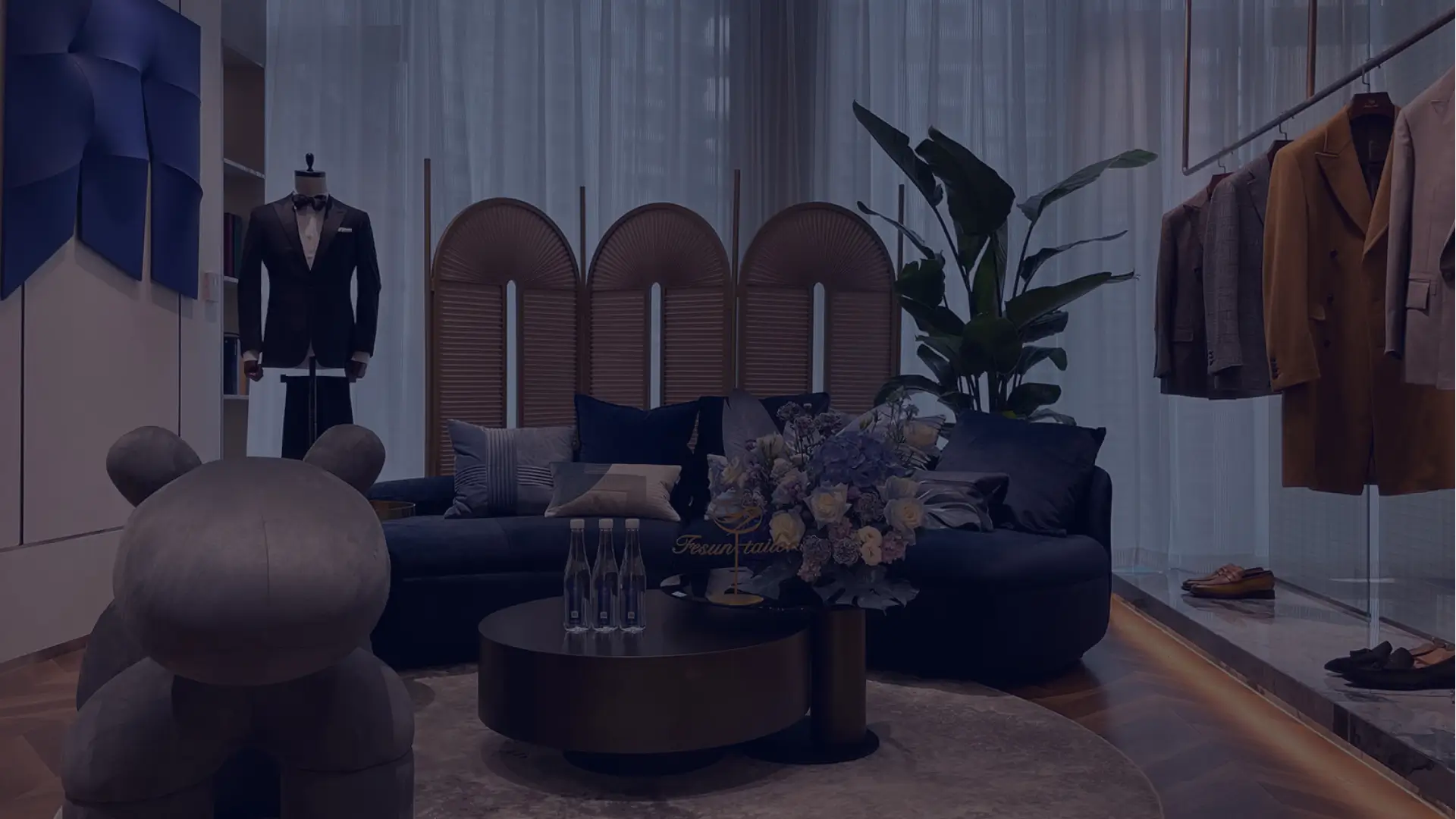 開放式工廠 行政辦公樓 形象展示店 展廳一角 樣衣展示 自動化裁剪 車間精細生產 流水線成品庫